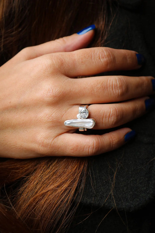 Pearl and Moissanites Square ring (7.0)Regular price $360Regular priceUnit price / per-