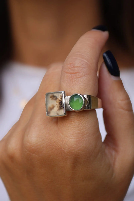 Spinner Ring with Moss Agate & MoissaniteRegular price $240Regular priceUnit price / per-