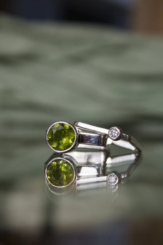 Peridot square ring set with Moissanite 3 mm